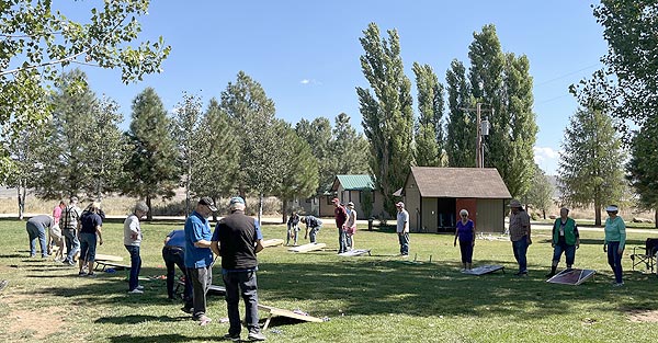 Getting ready for the cornhole tournament on Friday afternoon.